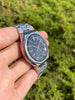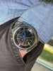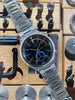 Features: Stunning original matte black dial with applied "SEIKO" logo and blue chronograph minute totalizer at 6 o'clock; original luminous hands; original matching chronograph register hands; blacked out day-date display at 3 o'clock with red Sunday text (can choose between English or Spanish days of the week); unpolished 40mm stainless steel case with tempered mineral glass crystal; rare original Seiko bracelet; in-house Seiko 6139 column-wheel chronograph movement (serviced)