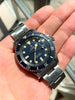Condition: Top condition with only minor honest wear consistent with age and careful use; 40mm Rolex Oyster case is completely unpolished with sharp edges, defined bevels, and thick crown guards; crisp caseback remains clearly legible with the original finishes; vibrant original blue bezel insert with no fading or visible wear; excellent original matte blue dial with very attractive yellow patina to the Tritium hour markers; excellent original Tudor "Snowflake" hands with matching original Tritium lume; superb original Rolex 9315 Oyster bracelet is tight and matches the overall condition of the watch (the original owner removed the diver extension from the bracelet); clean D19 Superdome crystal